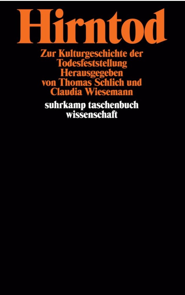 Schlich, T., & Wiesemann, C. (2001). Hirntod. Kulturgeschichte der Todesfeststellung. Frankfurt/M.: Suhrkamp. https://www.suhrkamp.de/buch/hirntod-t-9783518291252
