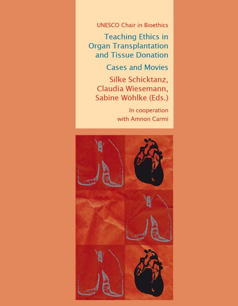 Schicktanz, S., Wiesemann, C., Wöhlke, S. (2010) Teaching Ethics in Organ Transplantation and Tissue Donation. Cases and Movies. In Cooperation with Anmon Carmi, UNESCO Chair in Bioethics. Göttingen: Universitätsverlag Göttingen. https://library.oapen.org/viewer/web/viewer.html?file=/bitstream/handle/20.500.12657/37274/schicktanz.pdf?sequence=3&isAllowed=y